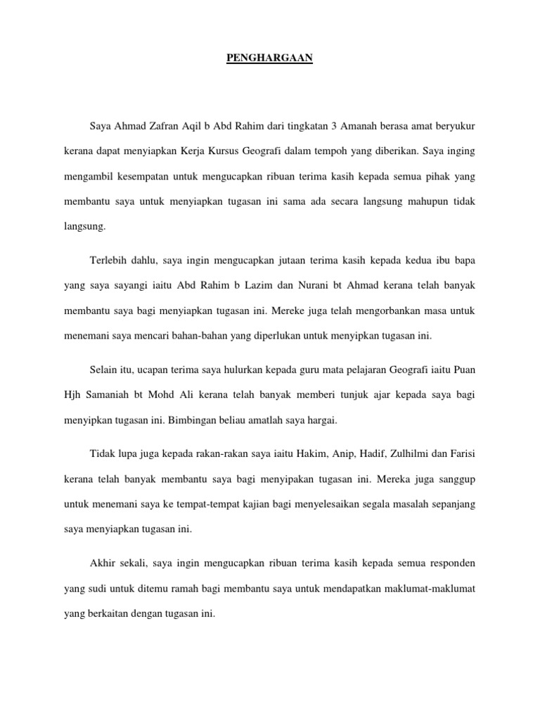 Contoh Kerja Kursus Geografi Sem 3 STPM. Saya faham bahawa semasa menjalankan kajian ini jika sesuatu yang tidak diingini. Contoh Penghargaan Kerja Kursus Pengajian Am.